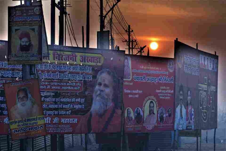 Por las calles de la ciudad efímera de Kumbh Nagri, de la que luego hablaremos, se pueden ver cientos de carteles anunciando las charlas de los maestros que compiten entre ellos por atraer a los peregrinos. Hay entre aquellos personajes de todo tipo. Desde los que mantienen un perfil bajo y se muestran en raras ocasiones fuera de sus ashrams a otros que son muy mediáticos y activos en los medios de comunicación y redes sociales.