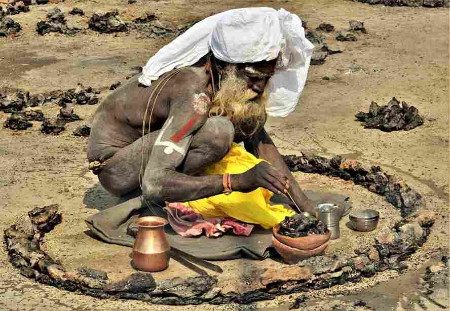 Durante el festival los sadhus llevan a cabo rituales ascéticos, como el kapal dhuni, en el que el renunciante permanece hierático durante horas al Sol rodeado de excrementos de vaca ardiendo y con una vasija en la cabeza que contiene también excrementos ardiendo. Es una forma de ir hacia el interior para evitar el agresivo entorno, controlar los sentidos y al trascender lo material aproximarse a la Divinidad.