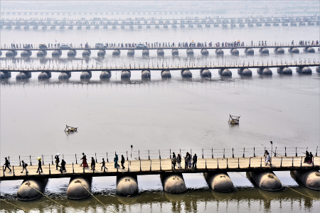 En la Kumbha Mela se muestra la capacidad organizativa y tecnológica que tienen, al construir en pocos meses una ciudad efímera capaz de albergar con comodidad aceptable, seguridad e higiene a más de ciento cincuenta millones de peregrinos en las seis semanas que dura el festival.
