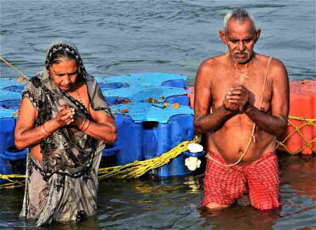 La unión de esos tres ríos, junto al mito del amrita derramado en ese lugar, hace del Sángam un lugar privilegiado para realizar el baño sagrado de purificación y el emplazamiento más importante para la celebración de la Kumbha Mela.